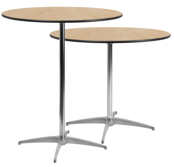 Looking for table rentals, or need tablecloths? Evergreen Tents & Events has you covered! Our classic 5 foot round tables sit 8 people comfortably while our 6 foot banquet tables work great for food presentation, gifts, or extra seating. Don’t forget to add cocktail tables to really open up your space!
